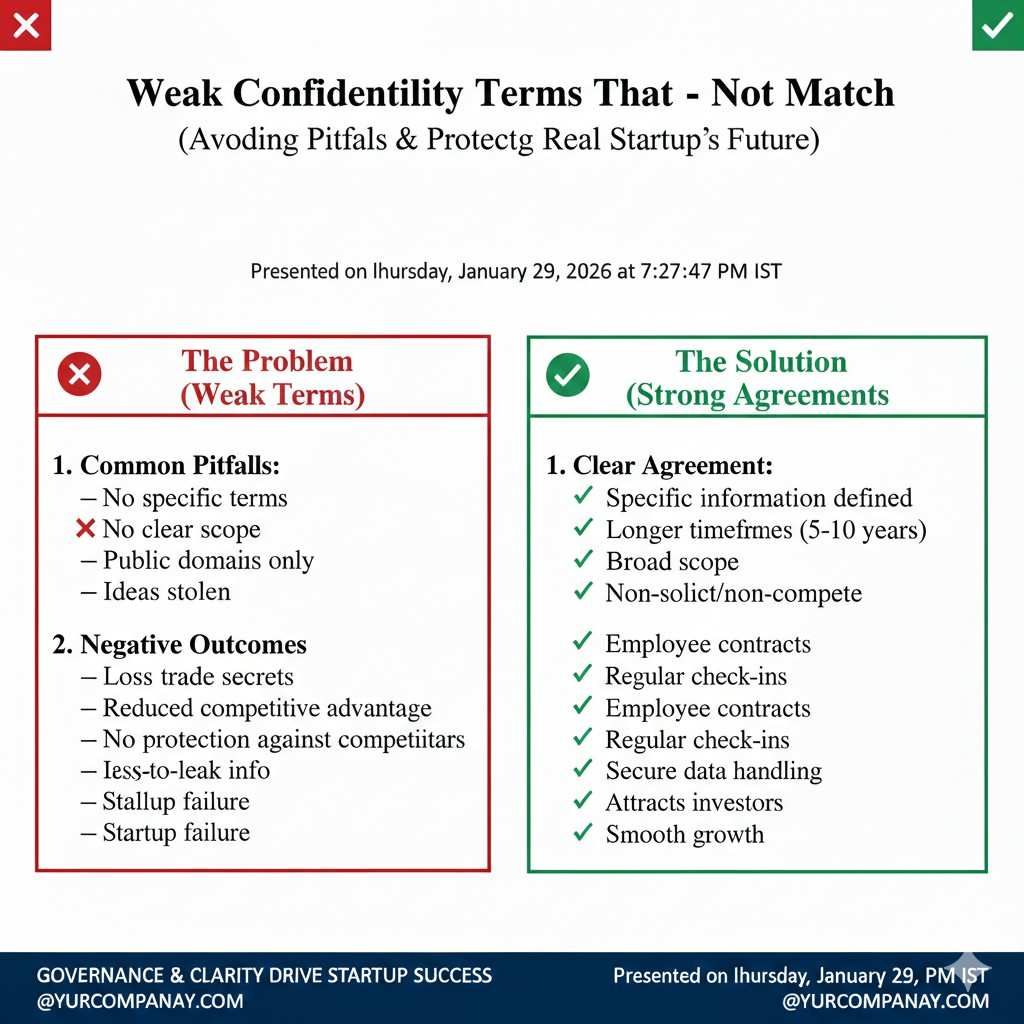 Confidentiality also needs practical enforcement. For example, what happens when a founder leaves? Do they return devices? Do they delete data? Do they keep access to GitHub, cloud accounts, and shared docs? If the agreement is silent, offboarding becomes chaotic.