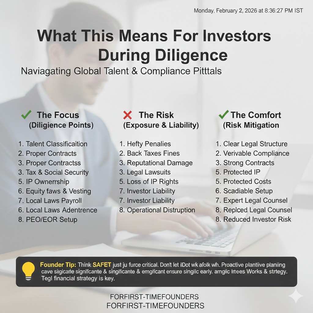 When a company mislabels a worker, the risk is not limited to a legal memo. It can become unpaid taxes, social charges, fines, back wages, and forced benefits. Even worse, it can bring fights over who owns the work that was created. That is why investors look closely at global hiring during diligence, even at pre-seed and seed.
