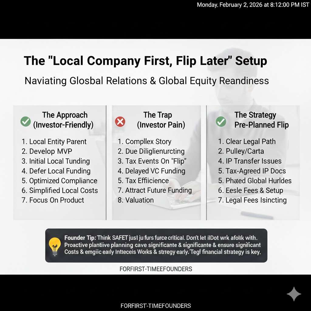 Many teams incorporate locally first because it is fast and cheap. Then, when a serious global investor appears, they consider a “flip” into a U.S. or Singapore parent. This is common for India-first teams and EU-first teams.