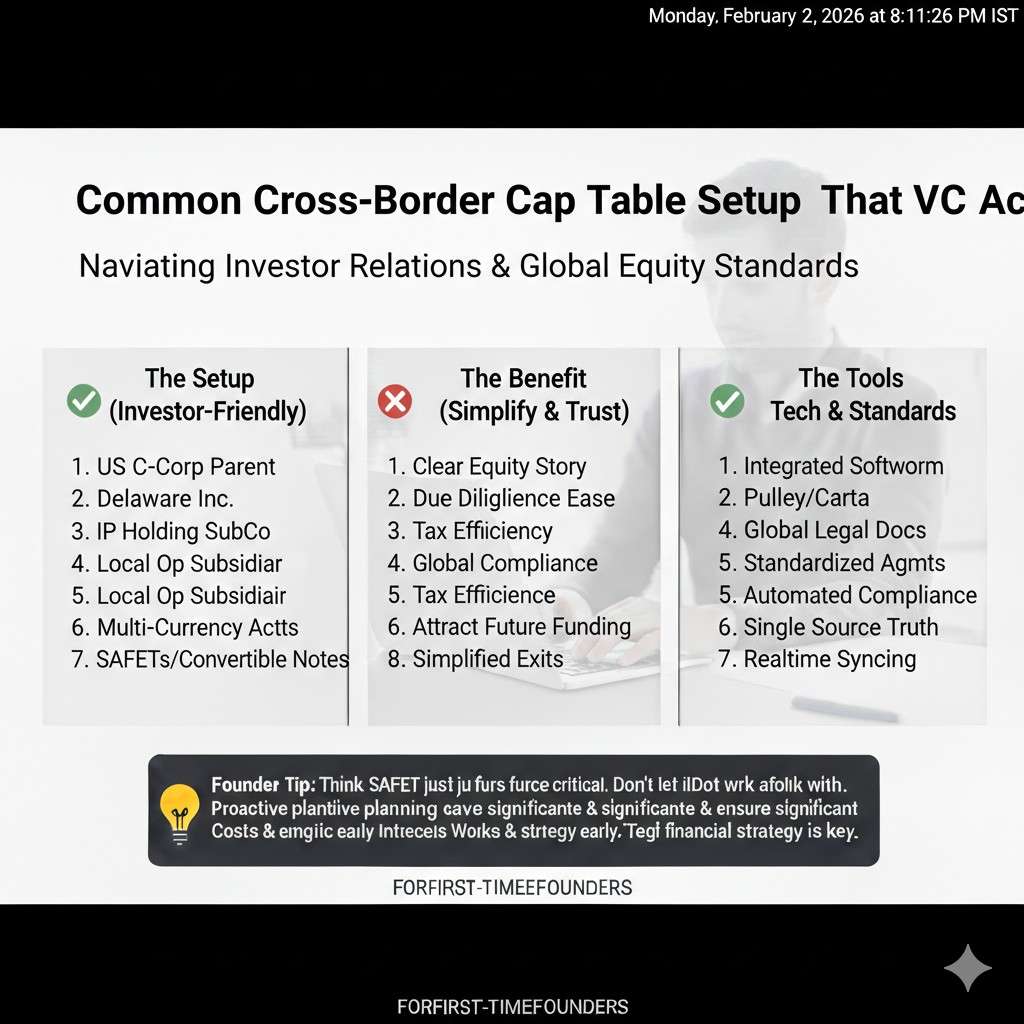 So the tactical move is to make the basics spotless. Clean founder issuance. Clean vesting. Clean option plan. Clean investor docs. Clean IP assignments. When those are clean, cross-border becomes a detail, not a risk.