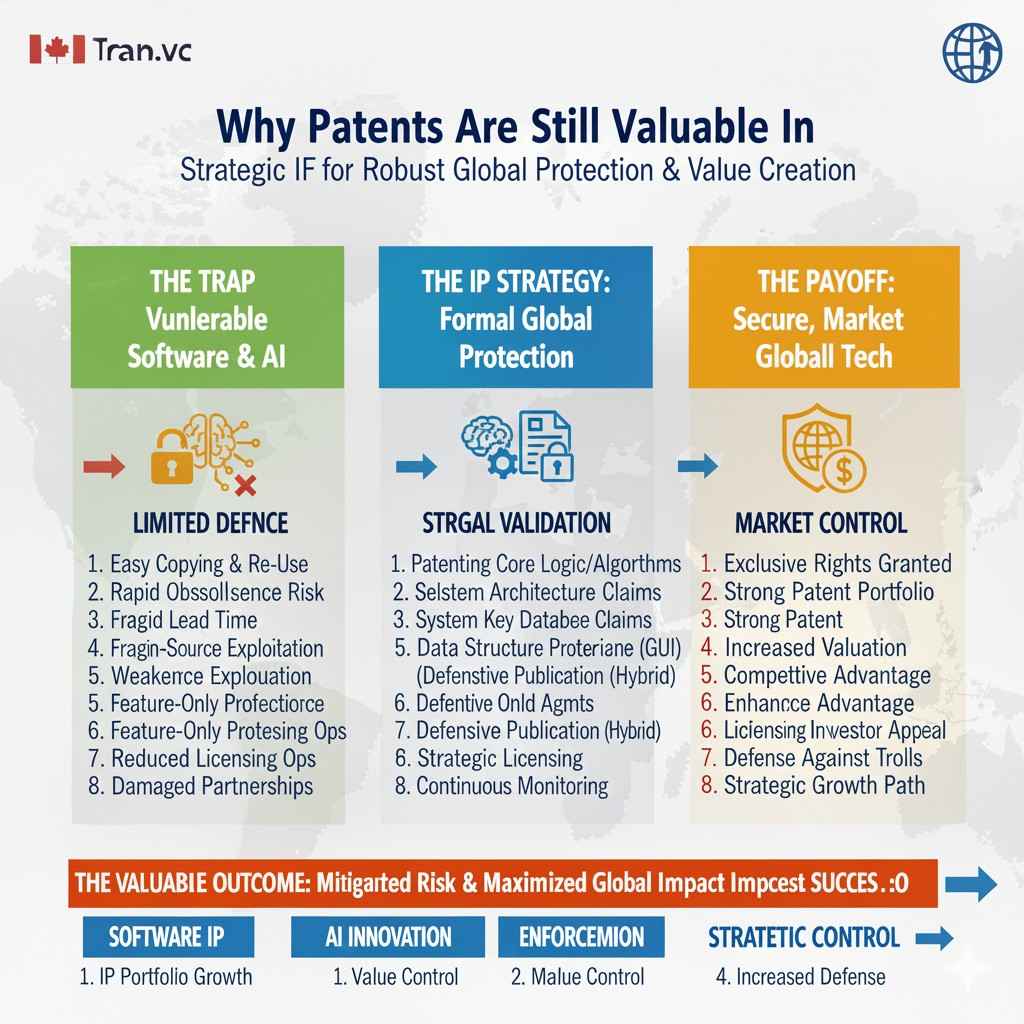 Some founders believe patents do not matter for AI or software. In practice, investors and large buyers still care, especially when the product touches real-world systems like robots, sensors, manufacturing, health, finance, or security.