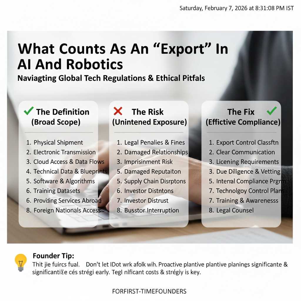 The reason is simple. AI and robotics are often “dual-use.” That means the same tool can help normal work and also help harmful work. Governments treat that kind of tech with extra care. So even early product demos, cloud setups, and overseas hires can create risk if you do not plan for it.