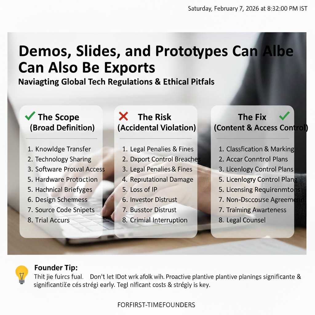 Before I continue, quick note on scope: export control rules change often and differ by country. This is not legal advice. It is a founder-friendly map so you know what to watch and when to bring in an expert.