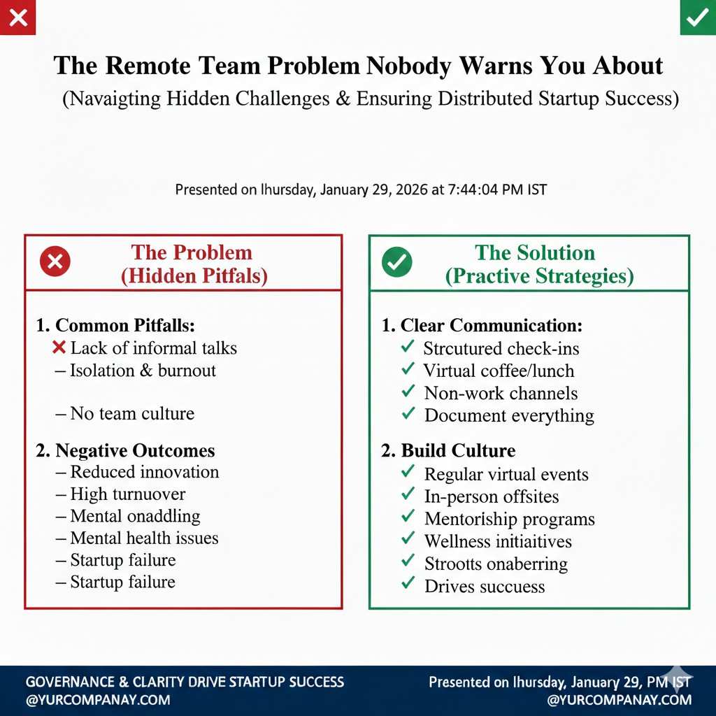 Most remote founder trouble does not start with betrayal. It starts with drift.