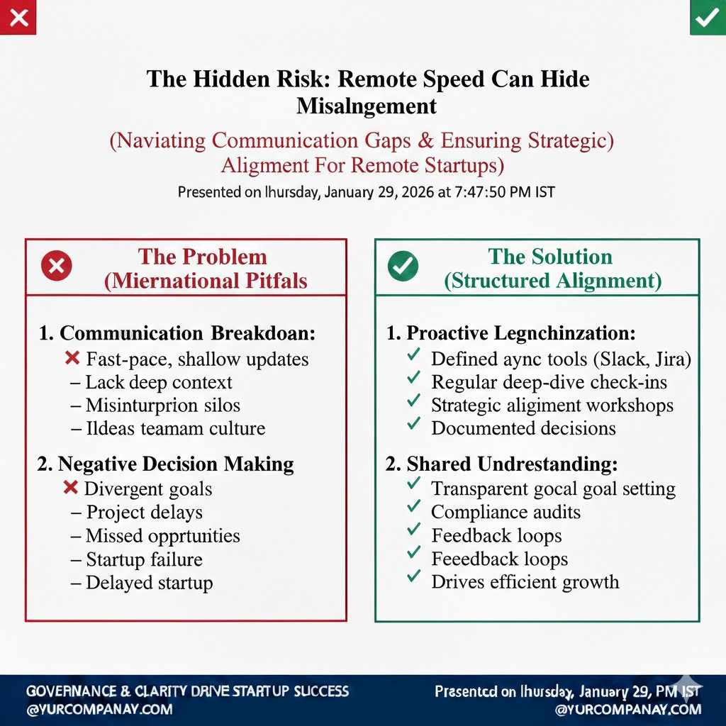 Remote teams can move very fast because they skip small talk and jump straight to tasks. Global teams can move even faster because work can happen around the clock. But speed can hide the fact that founders are making different assumptions about the same topic.