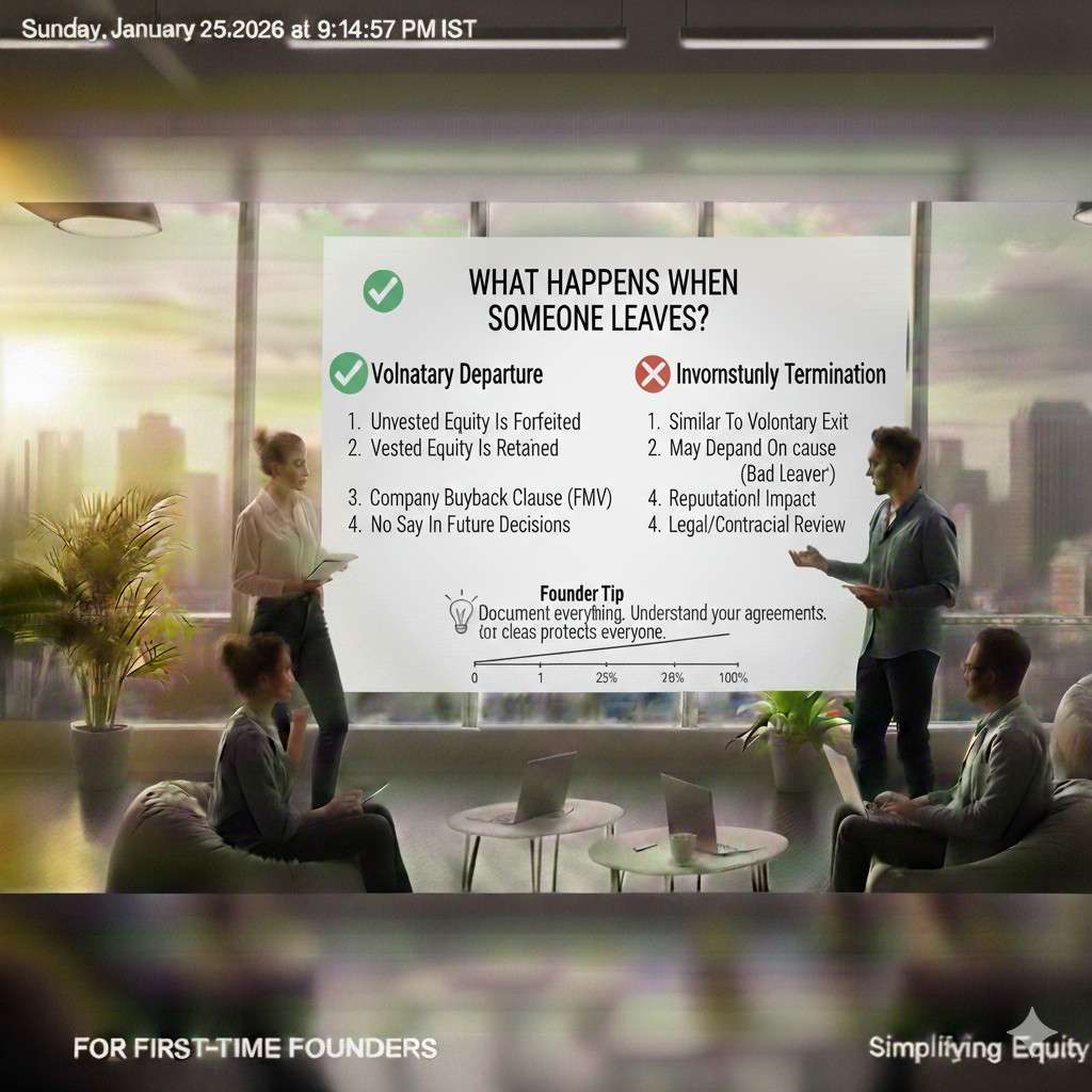 This is the part founders avoid talking about, and it is exactly why things blow up later. You need a clear rule for good exits and bad exits. You need to define what happens if someone leaves because of health, family, or a job offer. You also need to define what happens if someone is not doing the work and the team needs to move on.