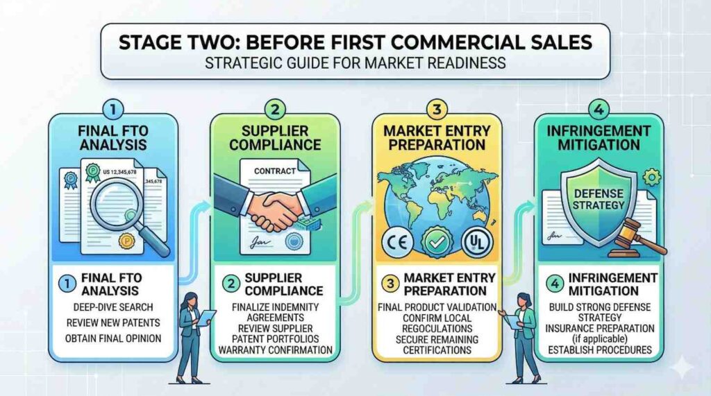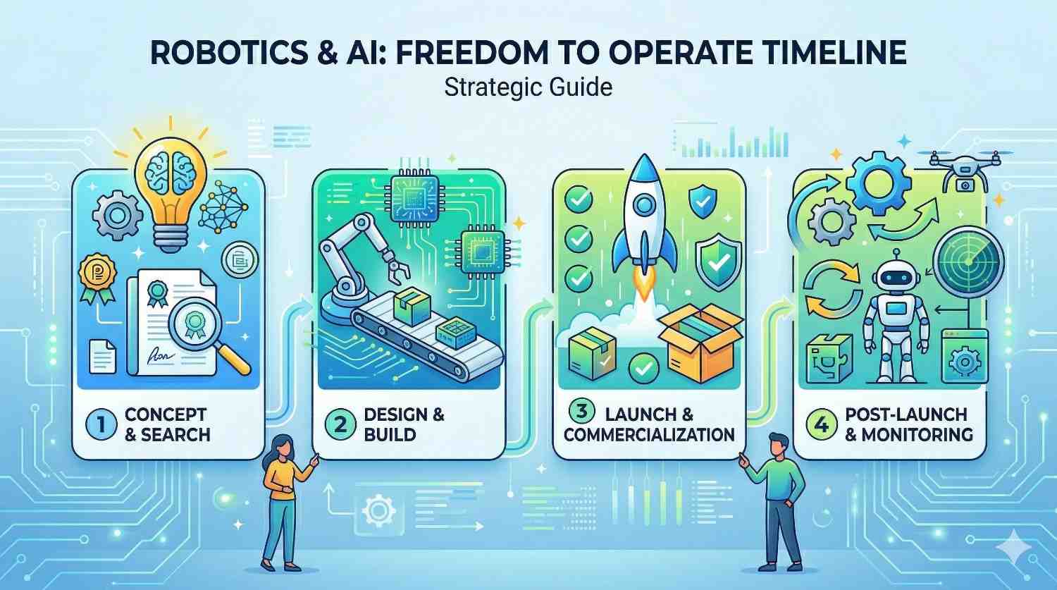 Before first commercial sales, especially in regulated robotics sectors like medical devices, industrial automation, or mobility systems, an FTO is strongly recommended.
