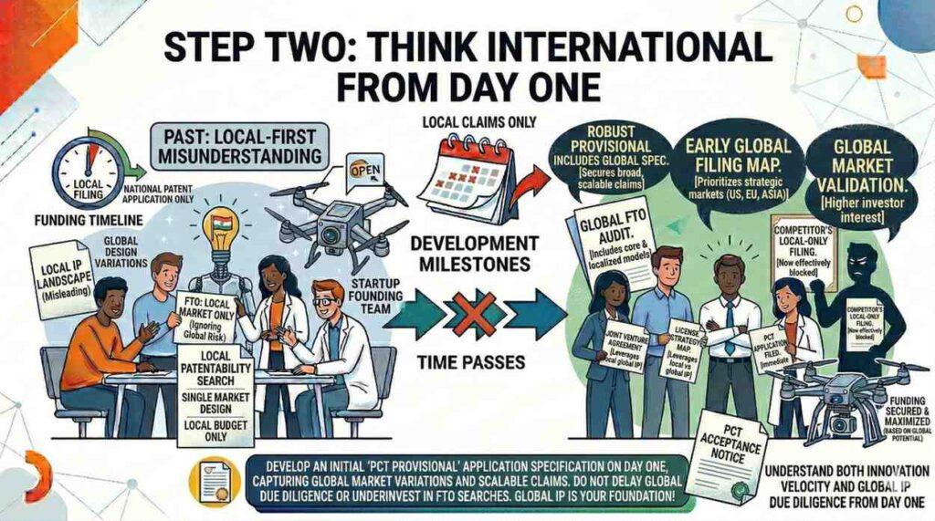 Often, startups begin with a priority filing in one country, then use international frameworks to delay final country decisions while they test the market. This gives you time to raise capital and validate traction without losing global rights.
