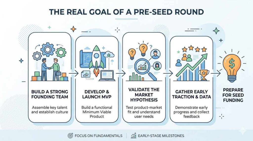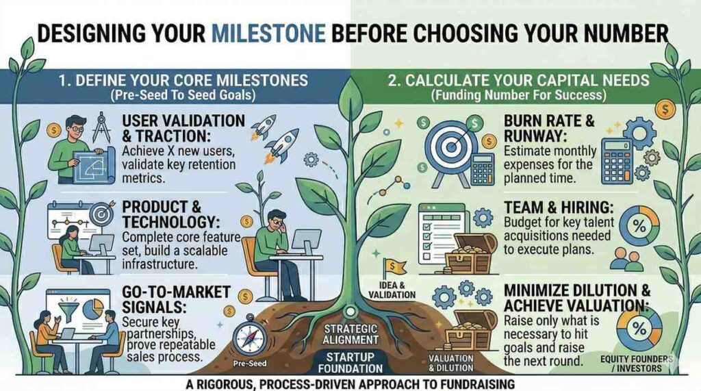 When you define your seed milestone clearly, your pre-seed raise becomes much easier to calculate. You are no longer raising money to “build.” You are raising money to achieve a measurable shift in your company’s strength.