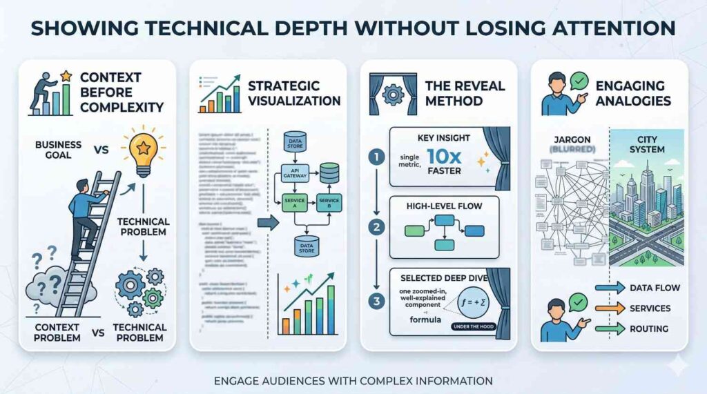 Think of your deck as a guided path. You are walking someone from confusion to clarity in under ten minutes. Every slide should move that story forward. If it does not, remove it.