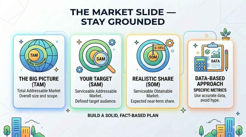 If your deck says your product serves “all businesses” or “every warehouse,” it feels unrealistic.