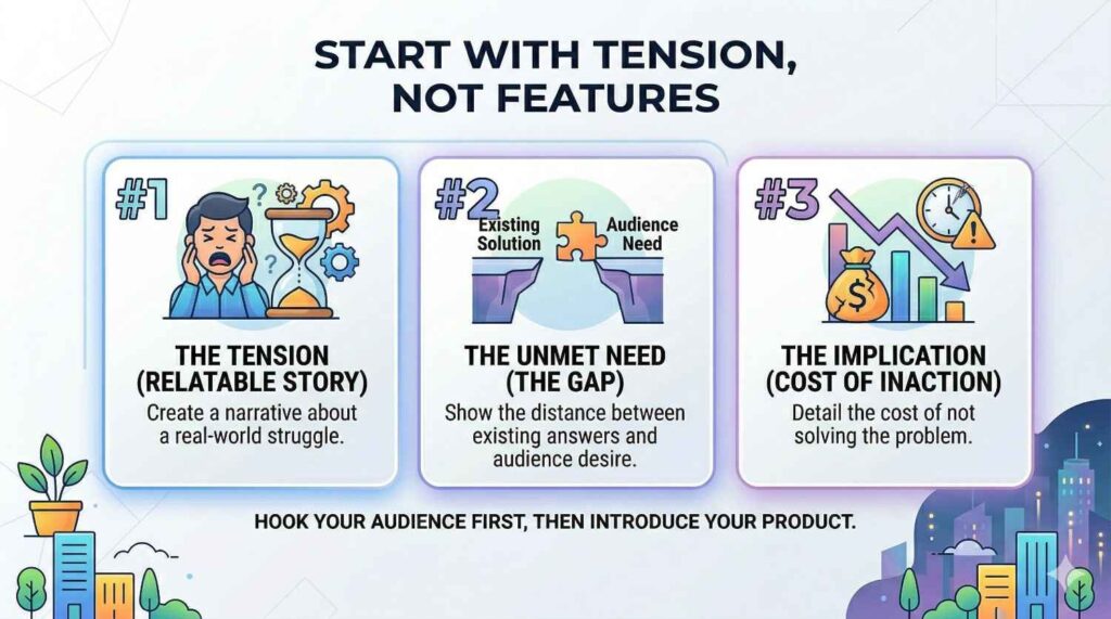 If you are building in AI, do not say “Companies need better data tools.” That means nothing. Show the gap. Show the waste. Show the risk.