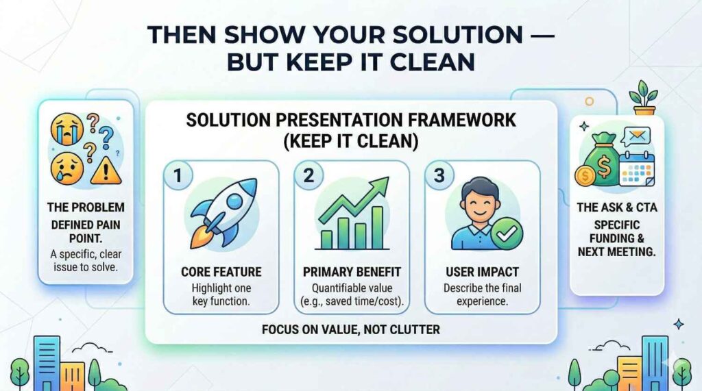 If your solution needs deep technical detail, save that for the meeting. Your deck should spark interest, not overwhelm.