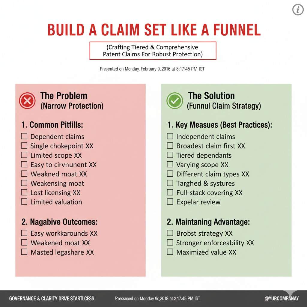 Read it as if you were a competitor trying to design around it. Ask yourself where the gaps are. Ask whether the claims truly cover your business direction.