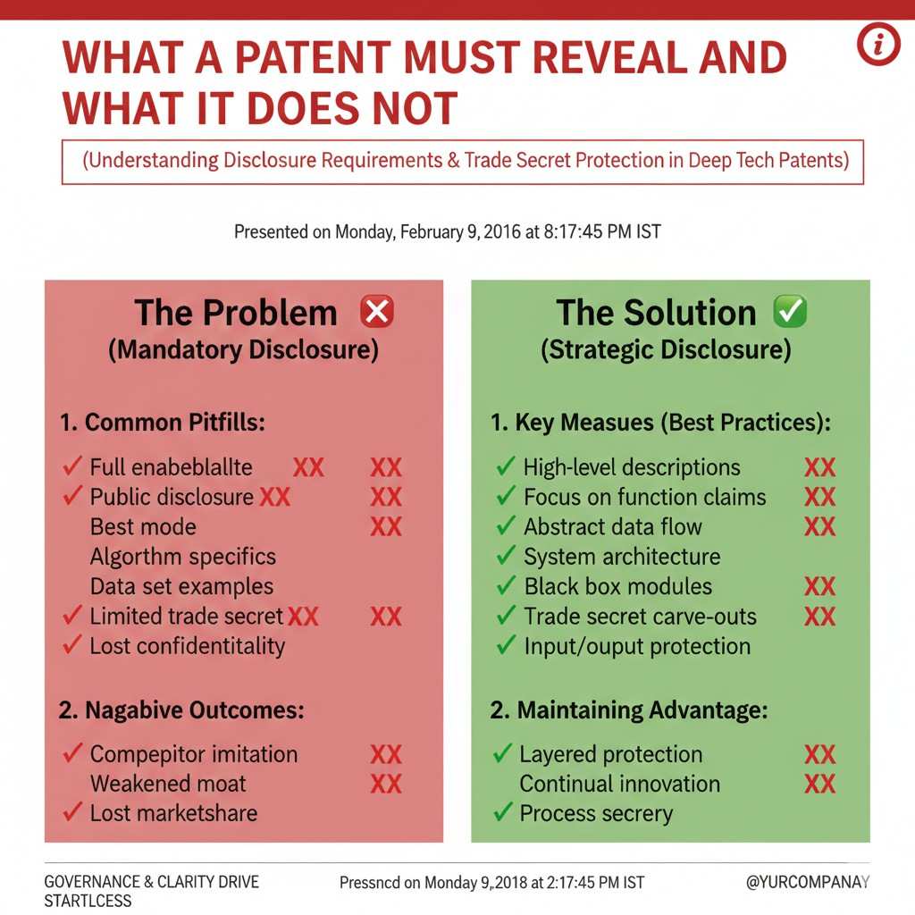 The mistake is assuming you must put every valuable detail into the patent. The smart move is deciding which details must be disclosed to secure a strong claim, and which details can stay private while still practicing the invention.