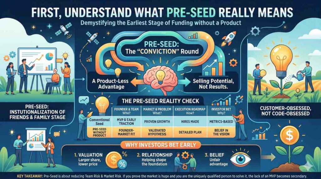When you do not have a product, trust becomes your main asset. At the pre-seed stage, investors are not buying usage charts or revenue graphs. They are buying belief in you. They are deciding whether you are someone who can take a raw idea and turn it into a real company.