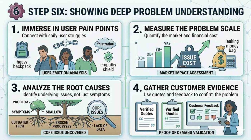 They want to see that you understand the problem at a deep level. Not surface level. Not “this market is big” level. They want to see that you have lived it.