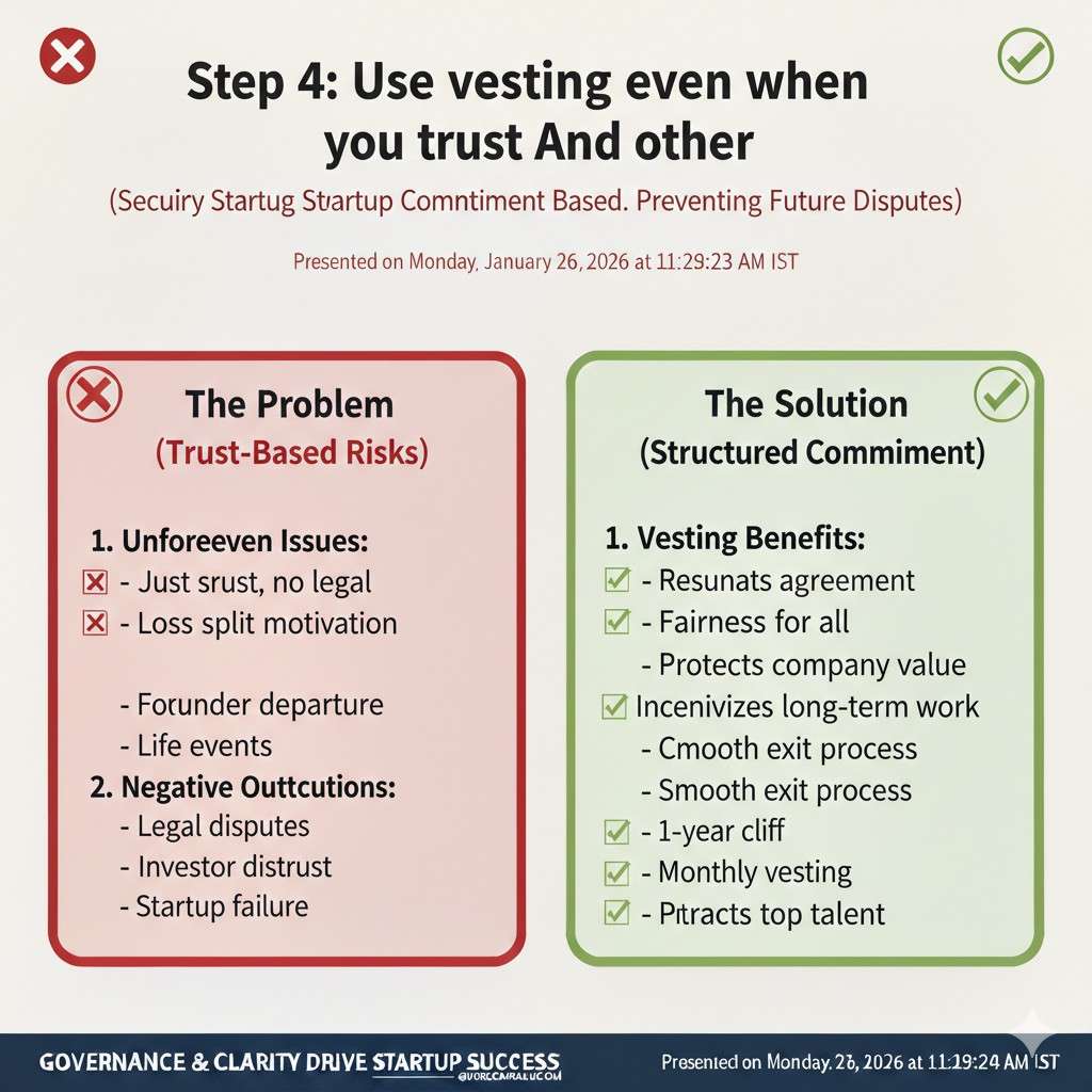 Many founders avoid vesting because it feels like distrust. But vesting is not a sign of doubt. It is a sign that you understand startups are uncertain and you want to protect the company from avoidable damage.