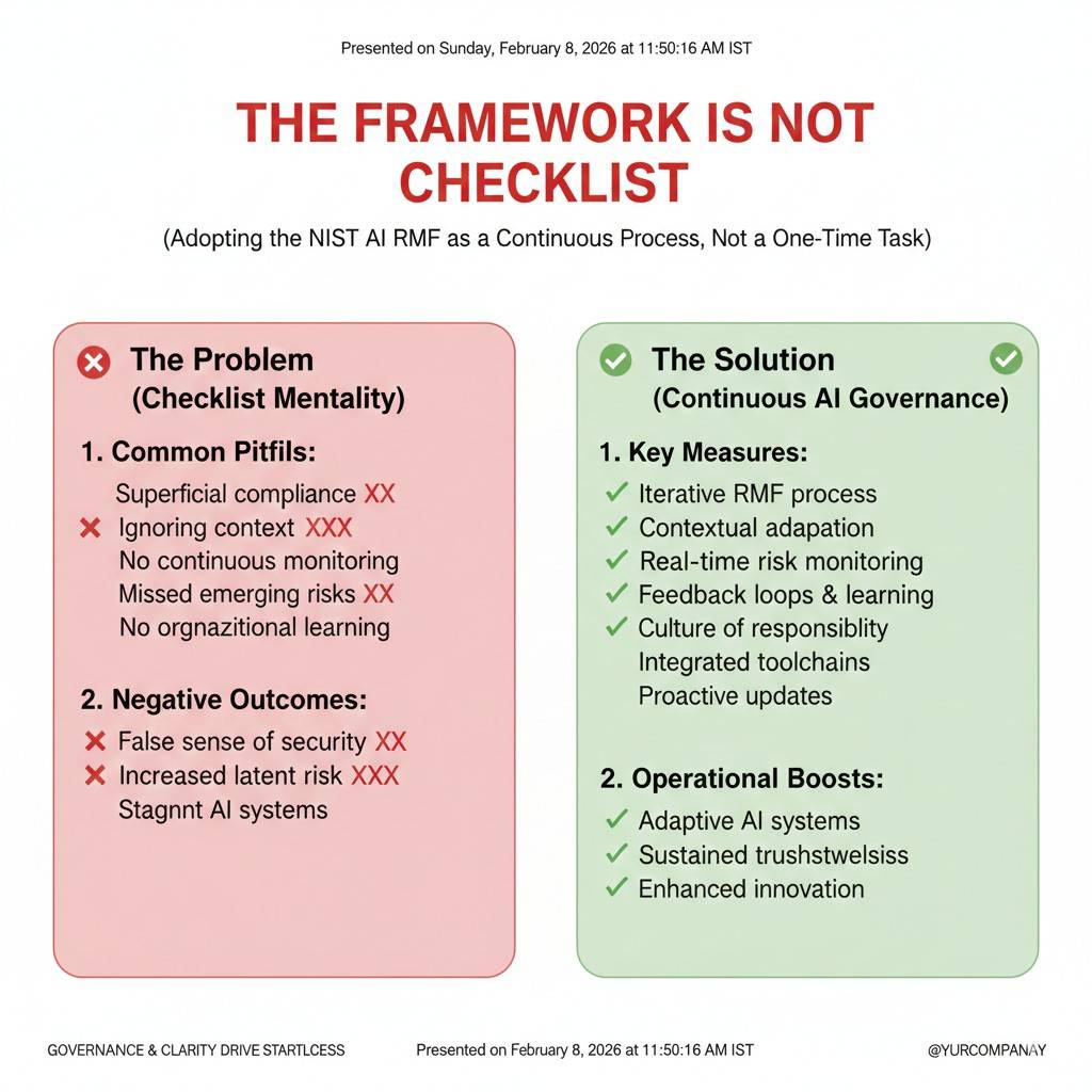 The NIST AI RMF is a guide, not a strict rulebook. You are not supposed to copy it into a document and call it done. The point is to build a few habits that you repeat, so risk does not sneak up on you.
