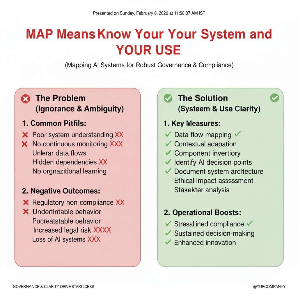 Map also forces you to be honest about use. The same model can be low risk in one setting and high risk in another. A chatbot for product search is not the same as a system that guides medical choices, even if the model is similar.