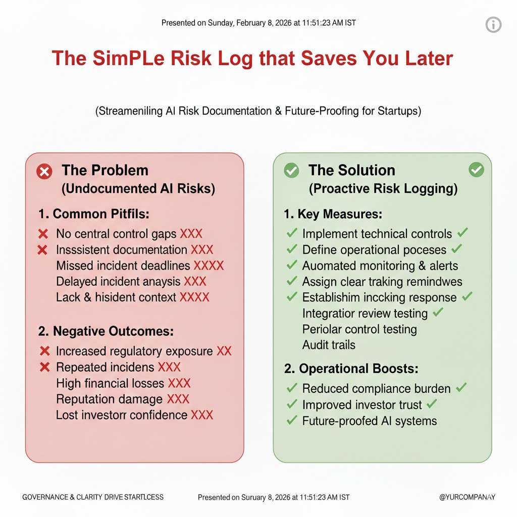 Each risk should have a clear name, why it matters, where it shows up, and what you are doing. Add a date and an owner. Over time, this becomes a history of your decisions. When an investor or customer asks for proof of maturity, you can show it without stress.