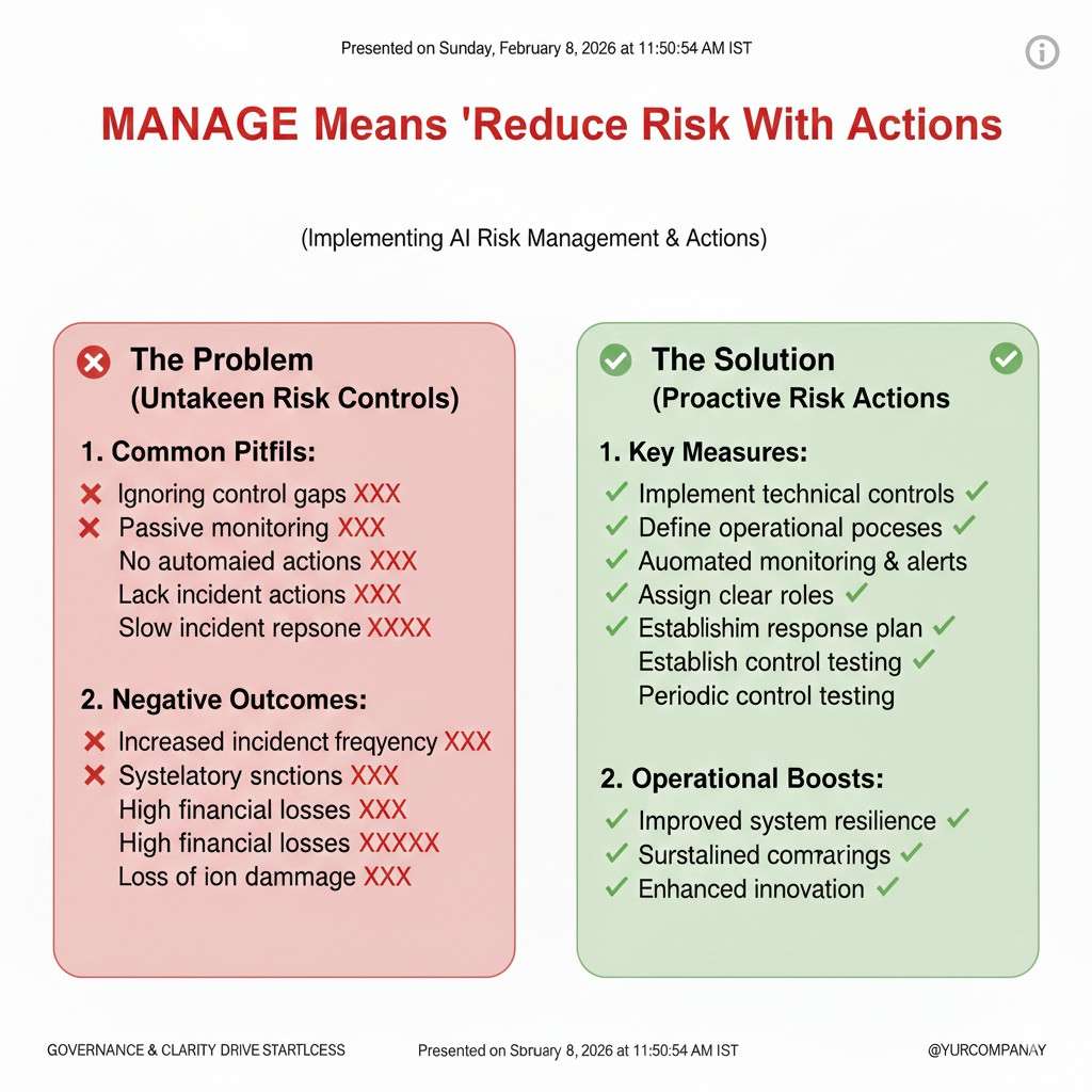 Managing is where you make changes based on what you learned. If a risk is high, you reduce it. If it cannot be reduced, you limit the use. If neither works, you should not ship that feature yet.