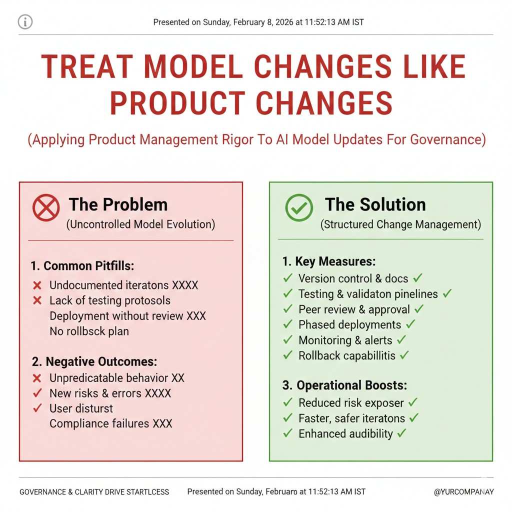 A model update can change user outcomes. If you treat it like a silent backend tweak, you will miss problems. Instead, treat model changes like product releases.