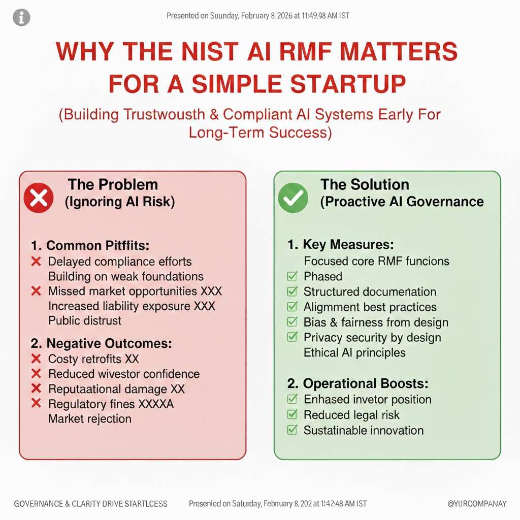 The NIST AI RMF helps you answer those questions without turning into a big company. It gives you a common way to talk about AI risk. When you use it early, you look prepared, even if you are small. That changes how customers, partners, and investors treat you.