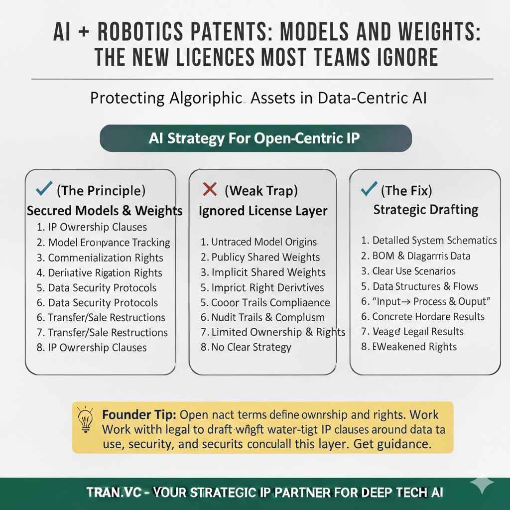 At Tran.vc, we work with robotics, AI, and deep tech founders early, when the code is still fresh and the product is still flexible. We invest up to $50,000 in kind as patent and IP services, so you can build a real moat without rushing into a priced round too soon. If you want help building a clean IP plan from day one, you can apply anytime at https://www.tran.vc/apply-now-form/.