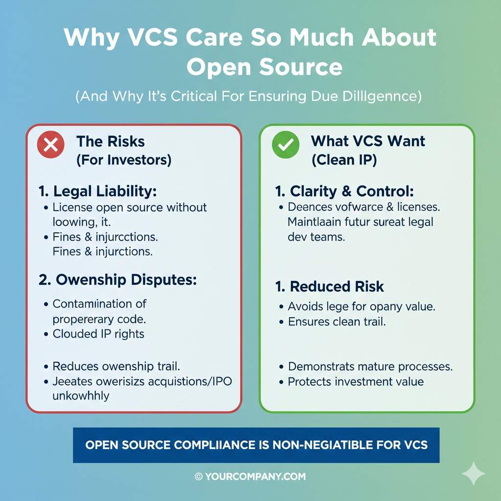 In the next section, we’ll cover what VCs actually check, what scares them, what “clean” looks like, and how to build an open source process that does not slow your team down.