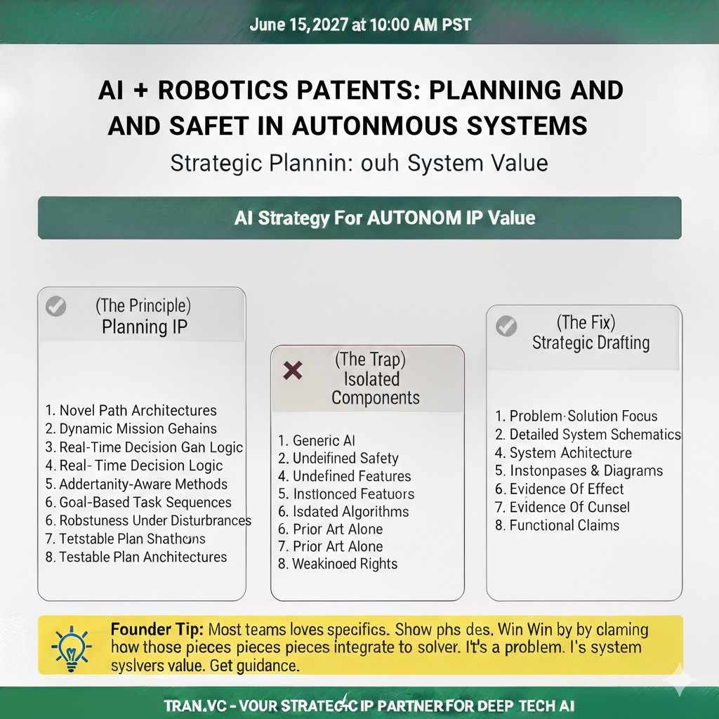 Patents in autonomy are not about “we use AI.” They are about the exact way your system stays safe, makes plans, and picks actions. If you can explain those steps in a clear, repeatable way, you can often protect them.