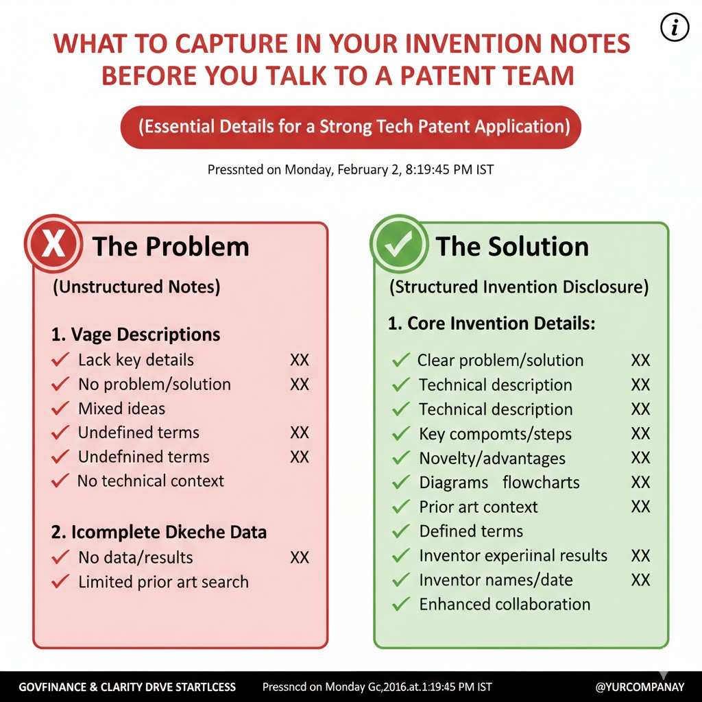 When you are building fast, you forget what you tried and why. Later, when it is time to file, you only remember the final design. That is dangerous, because the earlier failed versions often contain the best patent ideas.