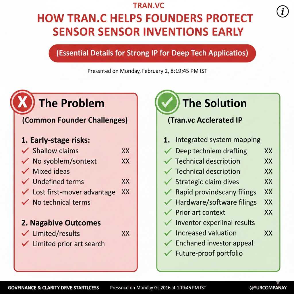 Most founders do not need “more patents.” They need the right patents. Tran.vc helps you map your sensor inventions into a small set of filings that protect what actually drives performance and reliability.