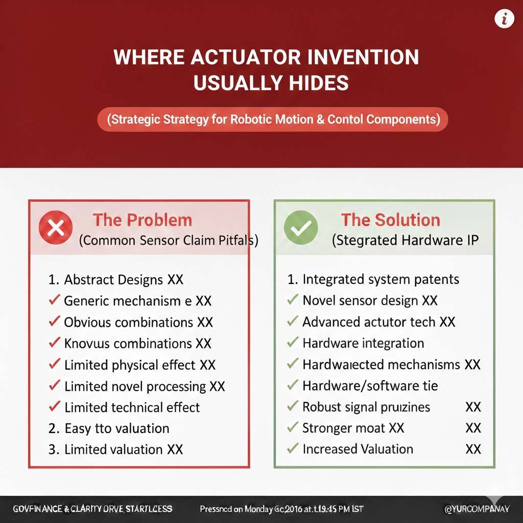Patenting actuators is often powerful because it sits right at the heart of performance. But you need to claim more than “we use a motor.” What matters is the actuator design choices that create your advantage.