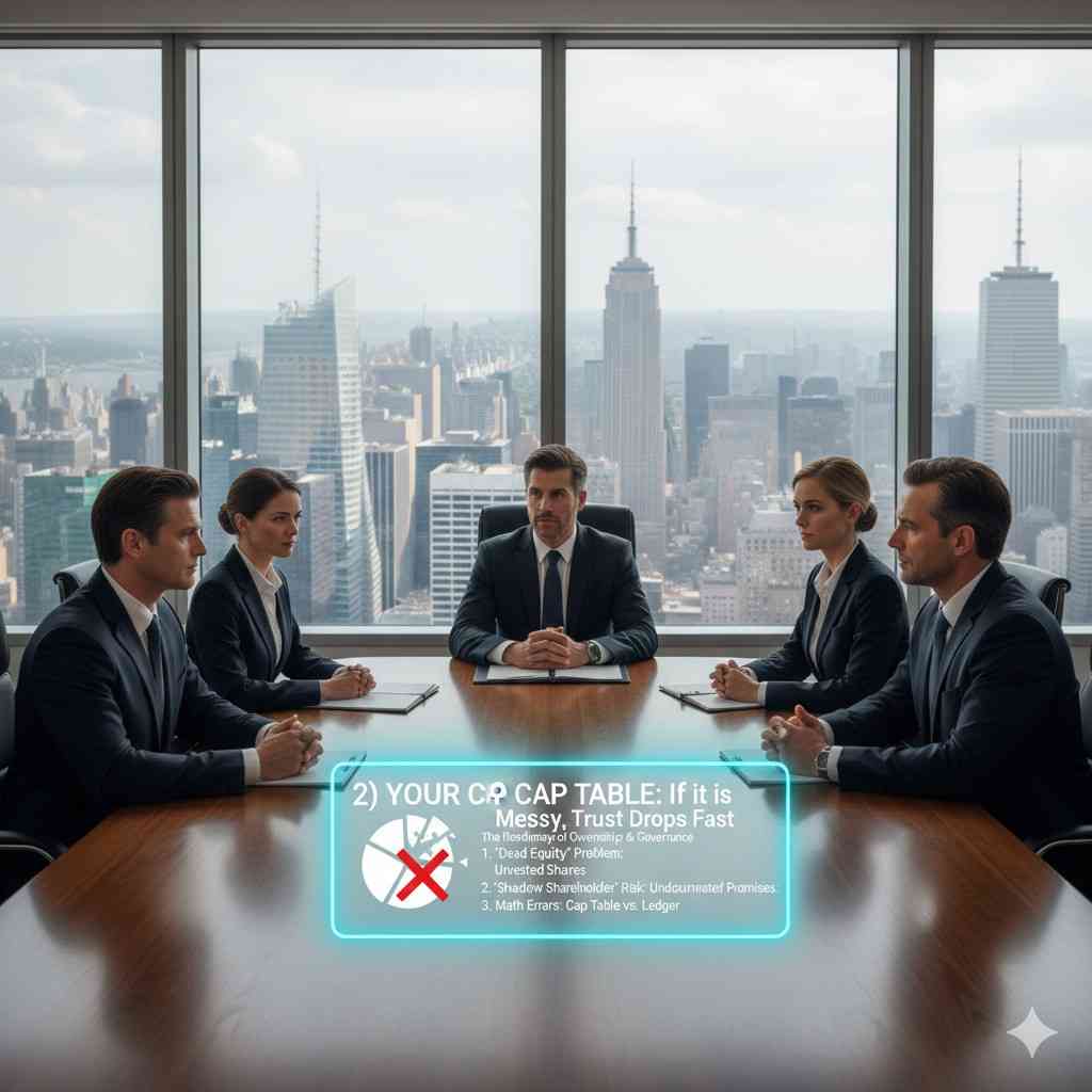 They worry a small holder will block a deal later. They worry someone will sue. They worry the company cannot grant options cleanly. They worry a founder can walk away with a huge stake after contributing little.