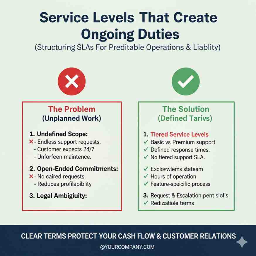 Many founders copy service level language without thinking. They promise response times, uptime, and support coverage that their team cannot consistently deliver.