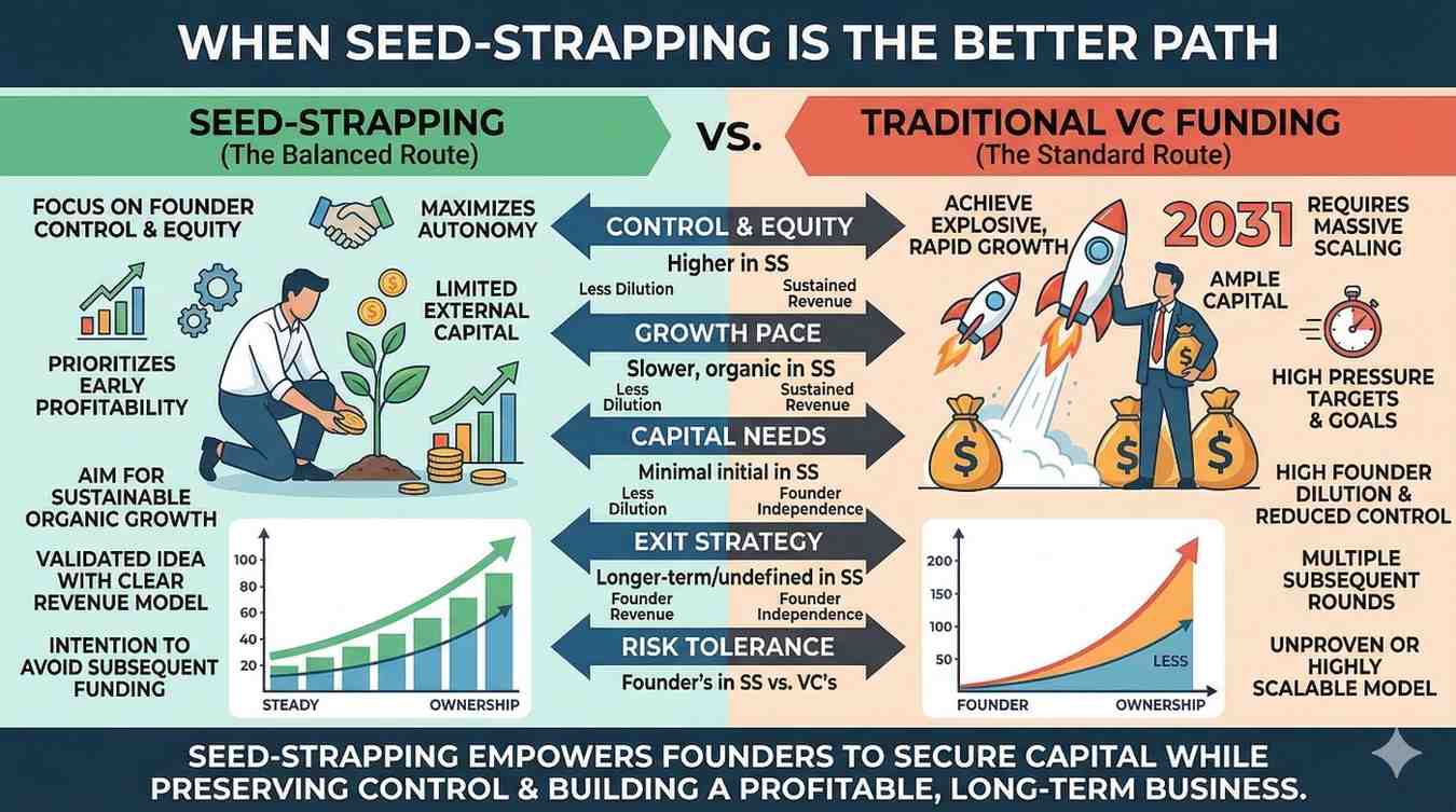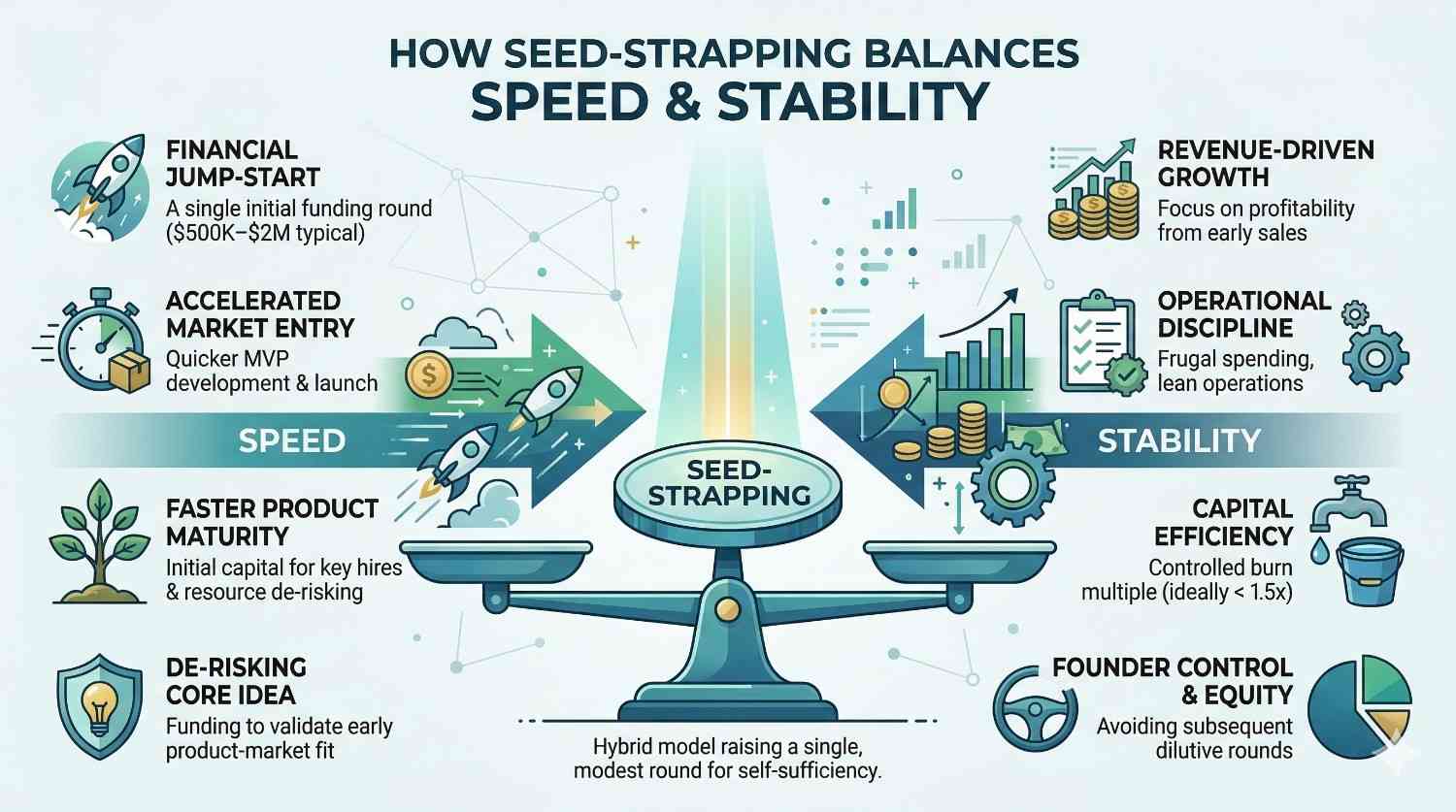 If your value lives in models, control loops, or unique data methods, you have more to lose to copycats. Seed-strapping helps you define the edge and protect it before you show too much. You enter sales with a stronger story and fewer fears about leaks.