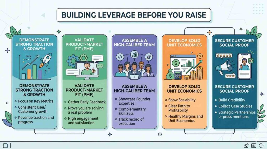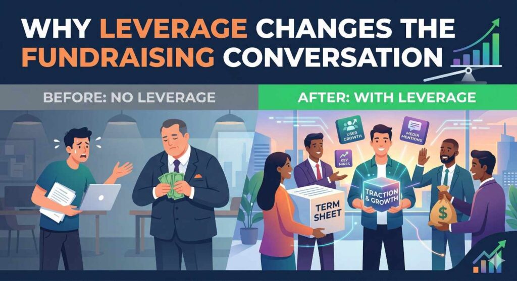 Conversations become more balanced. Investors show genuine interest. The startup gains leverage.