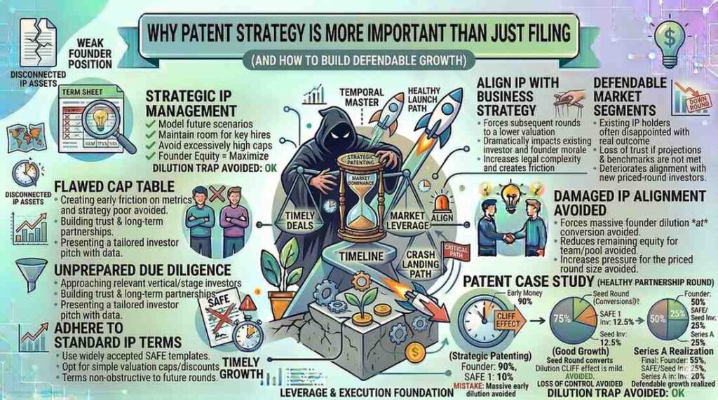 Instead of filing random patents later, the startup builds a focused IP portfolio around its core technology.