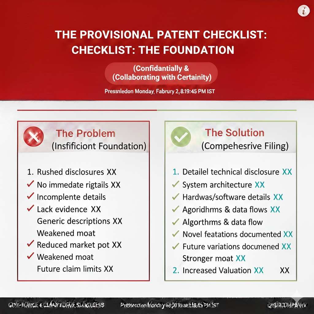 This guide is a practical, founder-friendly checklist you can actually use. No fluff. No hard words. The goal is to help you capture your invention clearly, in a way that a patent attorney can turn into a strong full filing later.
