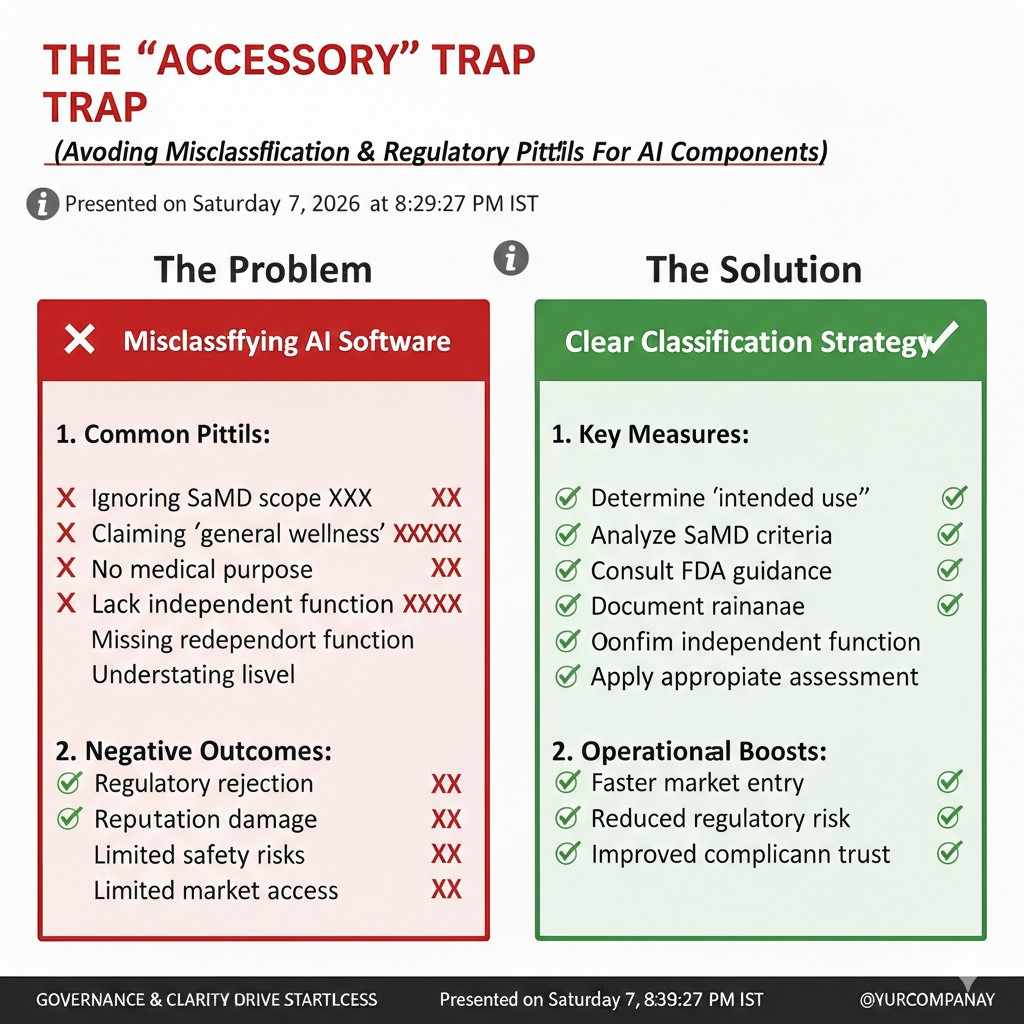 Sometimes your app supports a regulated device, like a monitor or imaging system. If your AI is needed for that device to work as intended, your AI may be treated as an accessory. Accessories can be regulated even if the app itself does not touch the patient. This is common when AI analyzes data coming from a device already on the market.