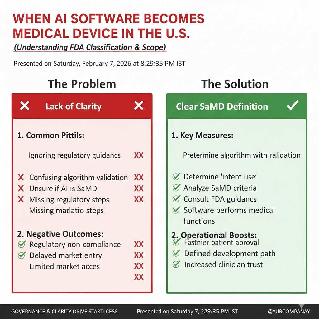 This article is a practical guide to how the FDA thinks about AI in Software as a Medical Device (SaMD). We will talk about how the FDA decides if your AI is regulated, what class your product might fall into, what evidence you must collect, how to handle training data and updates, and how to avoid the common traps that slow teams down. I will keep it simple, direct, and focused on actions you can take.