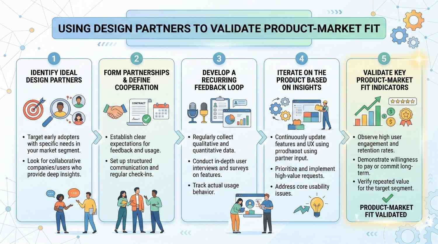 Product-market fit is not a feeling. It is the moment your product delivers clear value, and customers pull it from you. Design partners help you reach that moment faster because they reduce guessing. They show you the real workflow, the real blockers, and the real “this is what we would pay for” line.