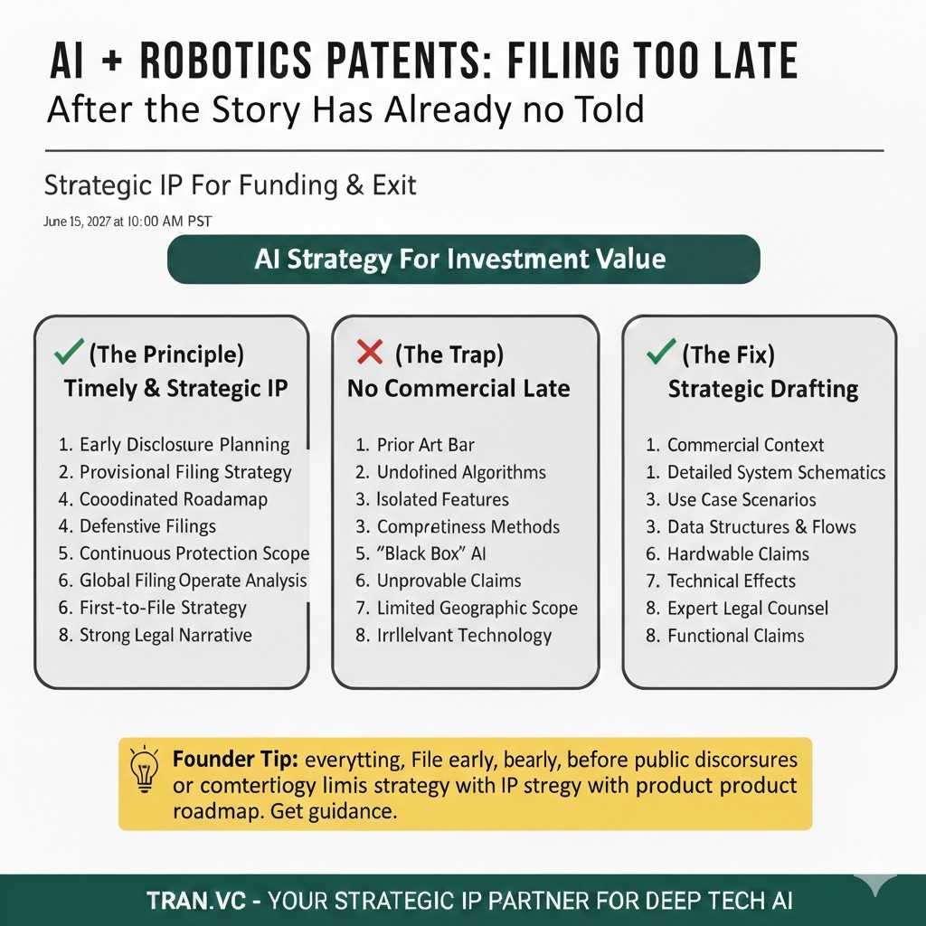 In AI and robotics, this often shows up when a team files early academic-style patents that do not reflect the real system they are now building. It feels outdated. It feels unplanned.