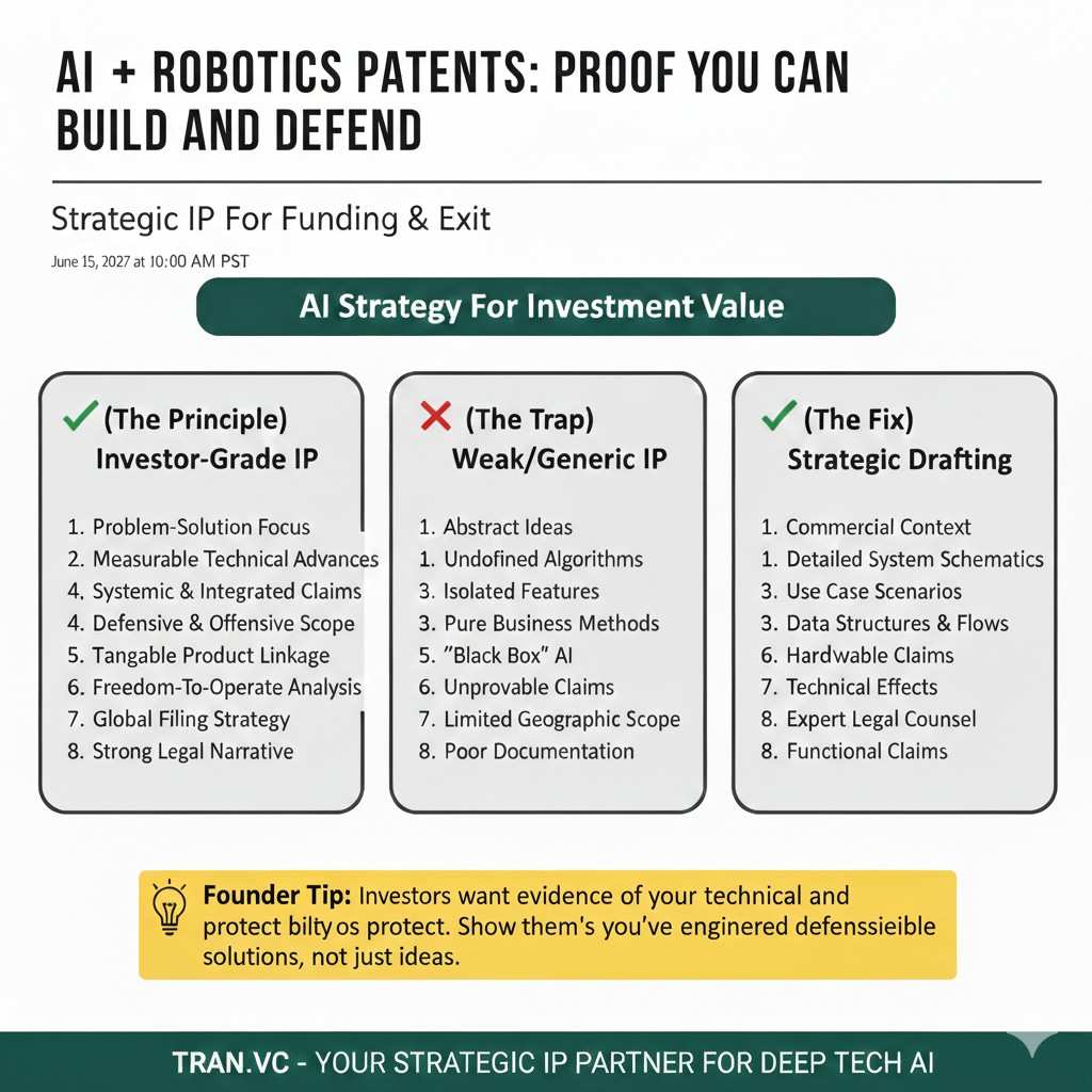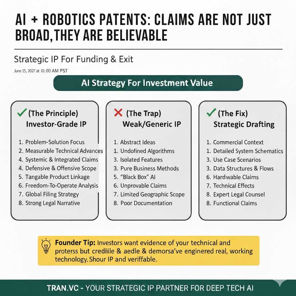 If you are building in AI or robotics, this matters even more. These markets move fast, and many teams ship similar demos. Investors need proof that your team has a defendable core, not just a working prototype. A well-built patent portfolio can be that proof, if it is built with intent.
