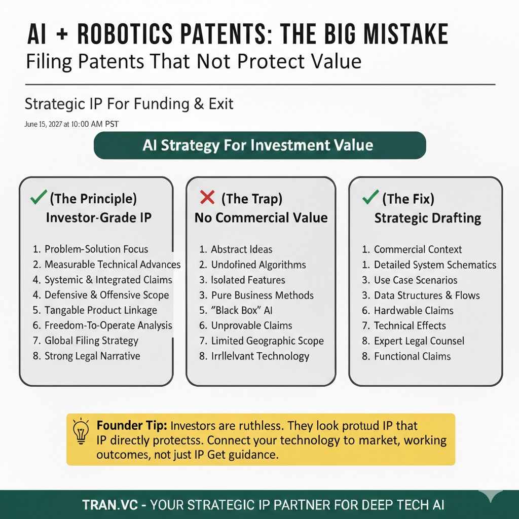And if you want help building an investor-ready IP plan from day one, Tran.vc can invest up to $50,000 in in-kind patent and IP services to help you lock down what matters before you raise. You can apply anytime here: https://www.tran.vc/apply-now-form/
