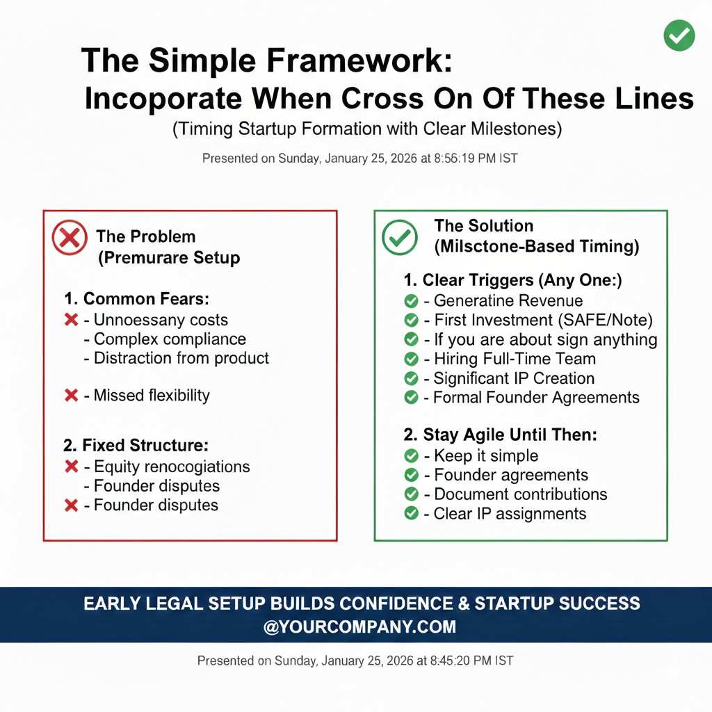 Some founders hear “incorporate early” and think they must stop everything and do paperwork.