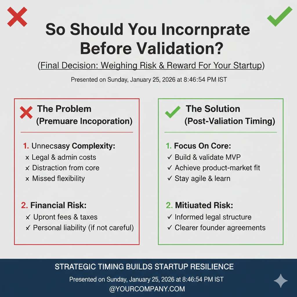 Founders say “I’ll incorporate after validation” all the time. But many do not define validation, so they end up waiting forever.